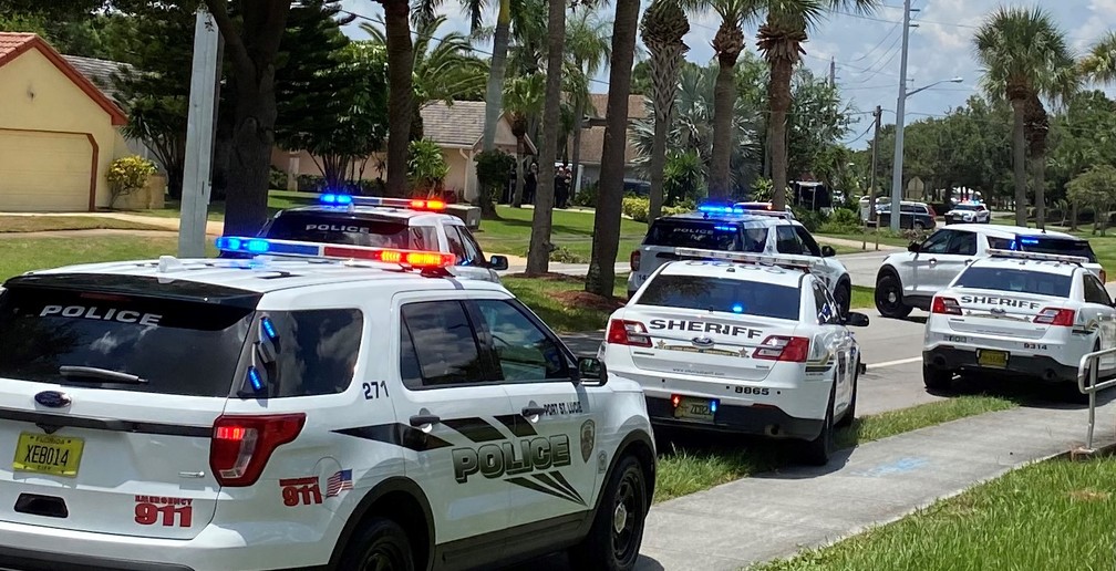 Viaturas da polícia cercam a casa durante tiroteio na Flórida — Foto: Divulgação/Polícia de Port St. Lucie