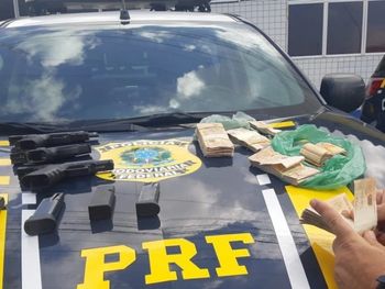 Durante a verificação no veículo, os agentes encontram R$ 31.690 em dinheiro dentro de sacolas plásticas, 53 cheques com valores entre R$ 2 mil a R$ 75 mil e três pistolas municiadas. Duas das armas não possuíam registro e uma estava no nome de outra pessoa.