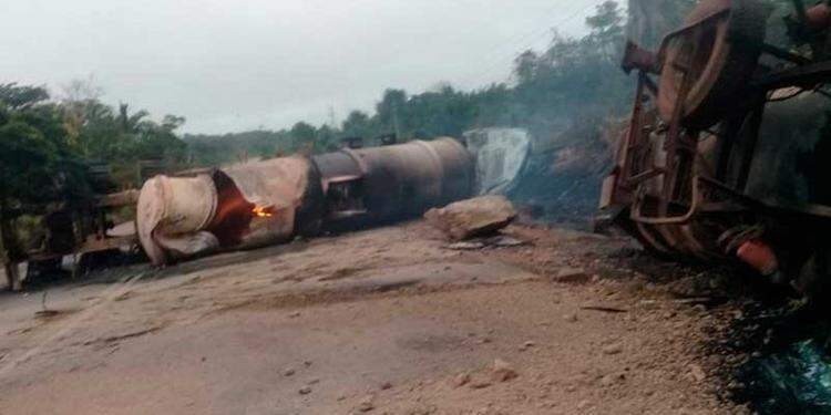 O acidente aconteceu quando uma careta tentou ultrapassar outra, e o motorista (da carreta com o combustível) para não colidir de frente com o veículo que forçou a ultrapassagem, perdeu o controle da carreta dele, que tombou e explodiu.